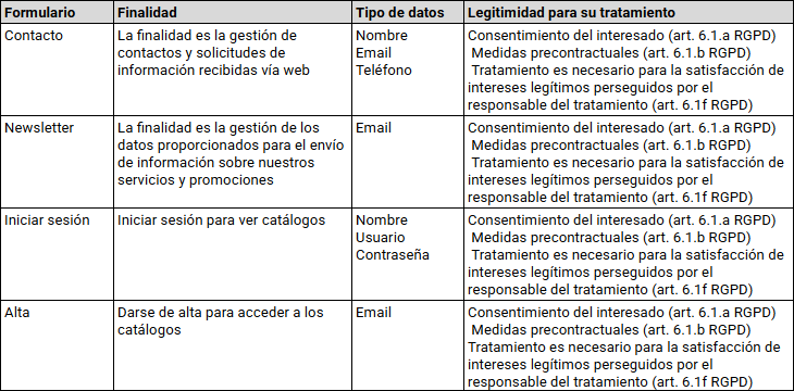 A continuación, adjuntamos una tabla en la que pueden consultar las formas en las que vamos a utilizar sus datos personales y la legitimidad para su uso, además de saber qué tipo de datos personales vamos a tratar. Podemos procesar algún dato personal por algún motivo legal adicional, por lo que si necesita detalles al respecto puede enviar un correo electrónico a info@grupomadolaz.es